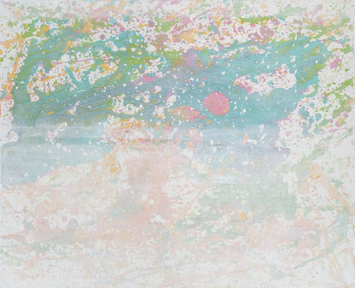 2) その後は、作品ごとのベースの色を塗った後、基本的には余り画面に触れずにドロッピングやポーリング等の手法を使っています。